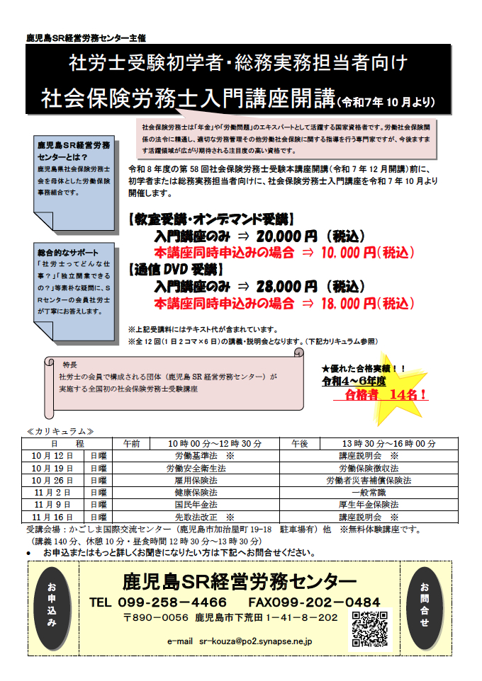 社労士受験初学者・総務実務担当者向け入門講座開講